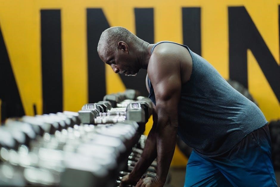 PDF strength training programs for individuals over 50 commonly include rowing exercises to strengthen the back and improve posture. Many PDFs recommend starting with resistance bands, offering adjustable resistance levels suitable for beginners. Light dumbbells are another excellent option, allowing for controlled movements and gradual progression.